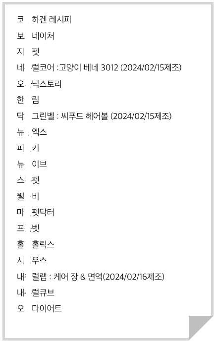 고양이 볼드모트 사료, 급성 신경·근육병증, 사료 리스트