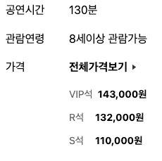 - 예매마감시간: 월요일 ~ 토요일 관람시 전일 17시에 마감 / 일요일 관람시 전일 11시에 마감