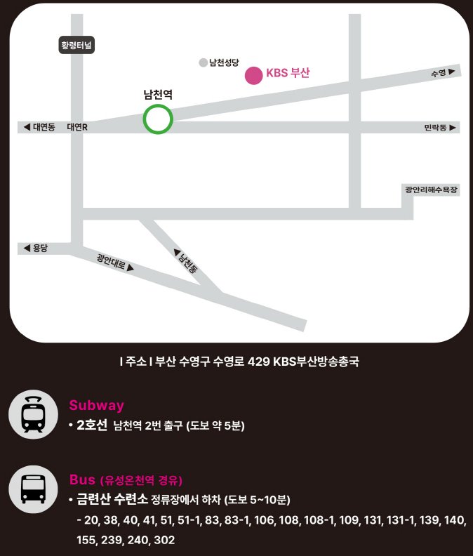 싱어게인3 부산 콘서트 주소: KBS부산방송총국 (부산 수영고 수영로 429)