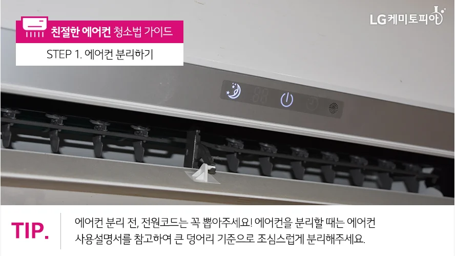 - 안전을 위해 에어컨 전원 코드를 먼저 뽑습니다.