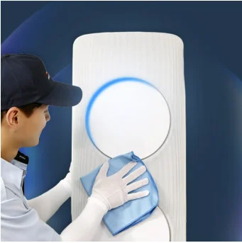 - 에어컨 겉면의 먼지를 물티슈로 닦아낸 후 마른걸레로 마무리합니다.