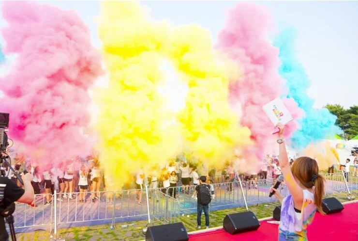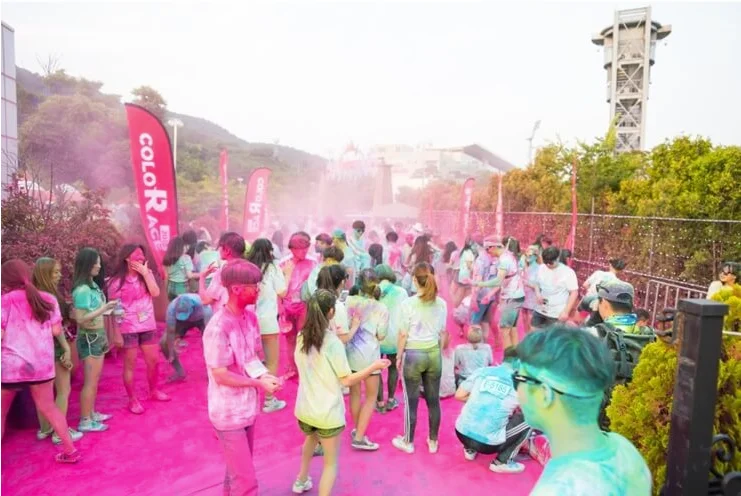 색색의 컬러 파우더 맞으며 3.5km 구간을 달리는 이색 마라톤이에요.