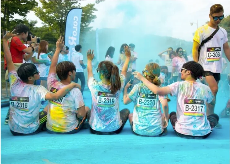 옥수수 전분으로 만들어진 컬러파우더를 맞으며 즐겁게 러닝에 참여해 보세요.